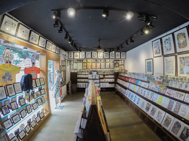 In Calangute, you can see a gallery with quirky statues in the front which is just a preview of the creativity and wittiness you’ll be exposed to. The gallery showcases the works of Mario Miranda, the iconic Goan cartoonist, on different products like lamps, mobile cases, cushion covers, mugs, medicine organizers, limited edition prints, mint boxes, bags and much more.