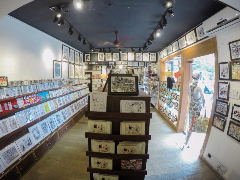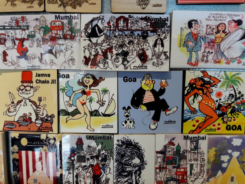 In Calangute, you can see a gallery with quirky statues in the front which is just a preview of the creativity and wittiness you’ll be exposed to. The gallery showcases the works of Mario Miranda, the iconic Goan cartoonist, on different products like lamps, mobile cases, cushion covers, mugs, medicine organizers, limited edition prints, mint boxes, bags and much more.